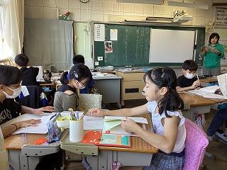 3年生 空いた時間で頭の体操中        4年生 分数の見方を確認中