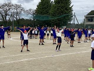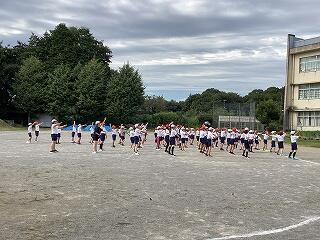 1時間目に全校で運動会の種目練習を行いました。ラジオ体操、エール交換・応援合戦、手賀ソーランを行いました。本番さながらの動きでした。