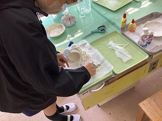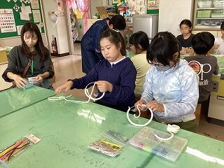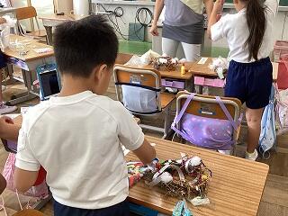 2年生は、幼稚園児に楽しんでもらうおもちゃを製作していました。園児が楽しめるように、工夫を加えては試してを繰り返していました。