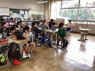 3時間目、東京大学でメダカを研究している教授の特別授業がありました。今回はオンラインでの授業でした。富勢西小学校、酒井根西小学校と本校の5年生が参加しました。各学校の児童が自校を紹介した後、教授が研究で撮影したビデオを見ながらメダカの学習をしました。そして、各校からの事前質問に教授が回答し、さらに聞きたいことがあればということで質問をしていました。本校の児童が、高校生レベルの質問をして周囲を驚かせました。