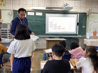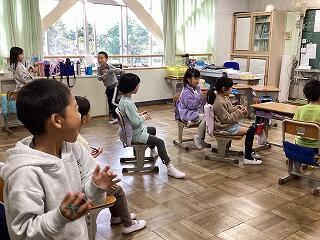 「国際交流会」を全学年で実施しました。本校に派遣されているALTと市雇用ALTの3人が外国語での活動を担ってくれました。子どもたちは体を動かしながら楽しく取り組んでいました。