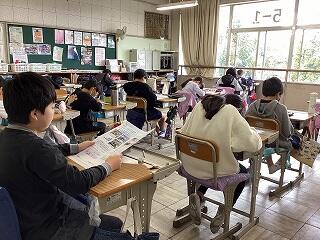 4年生 書き初め練習             5年生 国語 白神山地について