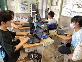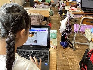 4年生(国語) 新聞づくりの続きをしています。各自写真を取り込み、レイアウトが上手です。