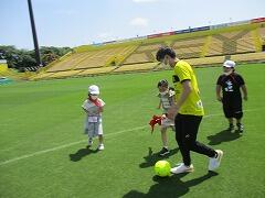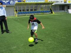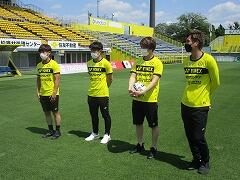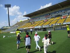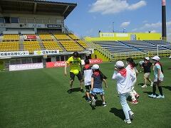 市内めぐりで最後に訪れた日立サッカー場で,柏レイソルの選手と心温まる交流ができました。