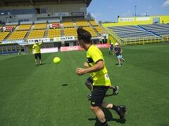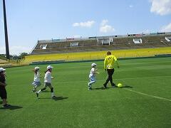 次に,プロの選手から,3年生全員でボールを奪うゲームをしました。3年生全員で選手を追いかけましたが,やはりプロです。ボールを触ることすらできませんでした。