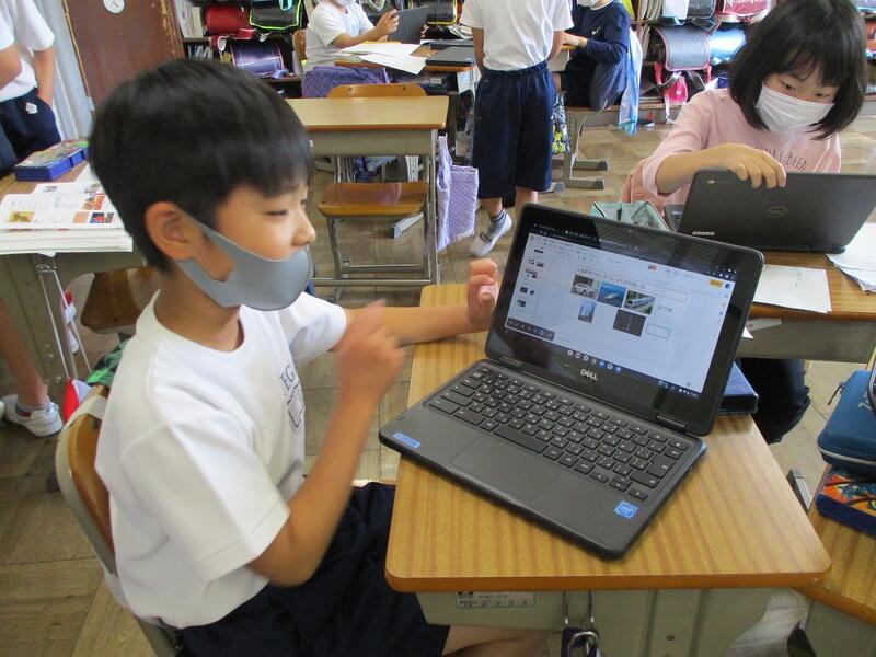 社会科の『千葉県の産業』の学習では,調べてみたい市が同じ人同士でグループを作り,進む千葉県やインターネットを利用して,Googleのスライドにまとめ,発表しました。昨年から,Googleのスライドを利用し,まとめる活動に親しんできたため,混乱もなく,スムーズに活動を進める子ども達に,大人の私が感心しています。ネットモラルには,十分気をつけて指導しながら,子ども達の持つ力を生かせる学習活動に取り組んでいきたいと思います。