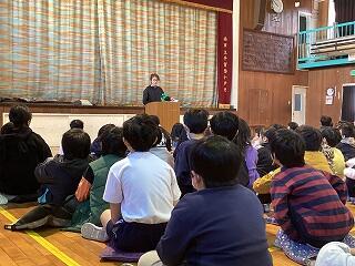 体育館で「不審者・あやしい人の見分け方」についてお話ししていただきました。