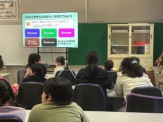 子どもたちの後に、保護者向け情報モラル教室が開かれました。