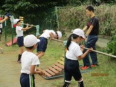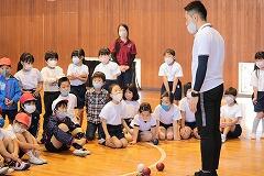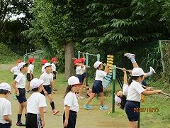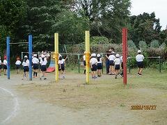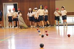 2時間目に1・2年生,3時間目に3・4年生,4時間目に5・6年生が行いました。講師の豊田先生にルールや投げ方を教えていただいてから,8チームに分かれて対戦しました。