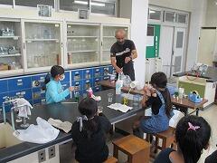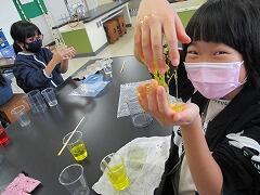 理科クラブ:洗濯糊(PVA)とホウ砂という薬品を使って,スライムをつくりました。不思議な手触りにみんなびっくりです!