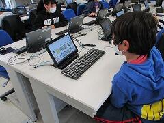 4年生は,スクラッチを使ってプログラミングの基礎を学びました。ITアドバイザーの先生の「さあ,ゲームクリエイターになったつもりでやってみなしょう!」の一言でみんなやる気満々。フローチャートを使ってキャラクターの動きや反応を考え,ネズミがネコに捕まらないようにして大好物のチーズの所までたどり着くという簡単なゲームづくりに取り組みました。これには論理的な思考が必要ですね。さあ,ネズミはネコに捕まらずにチーズまでたどり着けたでしょか?