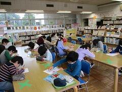 イラストクラブ:準備した本の絵や写真を見ながら,お気に入りのイラストを集中して描いています。描き終わったら台紙に貼って完成です。