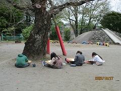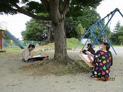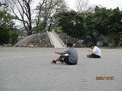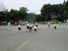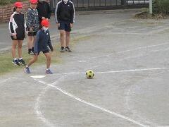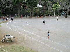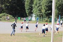 スポーツクラブ:2チームに分かれ,グラウンドでキックベースです。ゲーム形式で,オリジナルのルールを付加し,運動量を確保する工夫をしています。