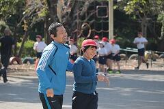 学年ごとに準備運動をしてから音楽にあわせて学年ごとのコースを走ります。持久走がんばりカードの「自分のめあて」にあわせて,頑張りましょう!
