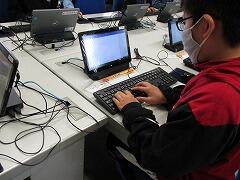 3年生は,キーボードの指の置き方,入力練習をしてから,各自がIDカードを用意して,「キーボー島アドベンチャー」に取り組みました。