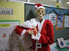 今日から12月です。今朝,登校したら,職員室前の廊下にサンタクロースの衣装を着て,大きな白い袋をかついだスケルトンがお出迎えしてくれました。「ハロウィン」,「芸術の秋」に引き続き,3度目の登場です!