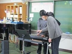 今日のテーマは,「和音に含まれる音を使って旋律をつくりましょう。」です。子ども達は真剣に取り組んでいます。さあ,どんな曲ができたのでしょうか?