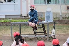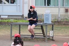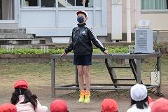 1時間目からは各学年の体育の授業を参観し,一緒に勉強をしました。縄跳びやマット運動などの模範演技をしたり,一緒に活動したりしました。業間休みの縄跳び練習にも参加し,素晴しい縄跳びの技に子ども達はびっくり!昼休みには,授業のなかった学年から遊びの予約が入るなど大人気でした。児童達はいつもと違った雰囲気に刺激を受けていたようでした。森尾先生,1日ありがとうございました。