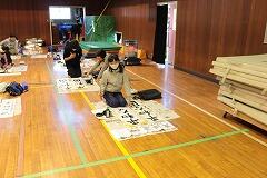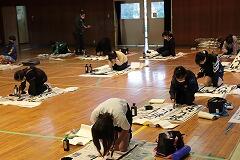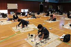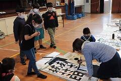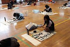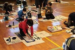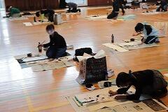 本日,1~4時間目を使って,5,6年生の書き初め練習会を行いました。密を避けるために,学年ごとに時間を区切って体育館での実施です。1,2時間目は5年生,3,4時間目は6年生が練習しました。綾部先生のご指導の下,始めにDVDをみて書き方のポイントを押さえてから,各自練習をします。継続したご指導と皆さんの練習の成果で学級全体のレベルはかなり高いと感じました。最後に,清書を1枚,集中して書いて提出しました。