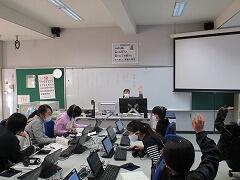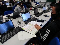 慣れていない人が多いので,できた作品を保存する作業に戸惑っていました。これから,少しずつ勉強して慣れていきましょう!