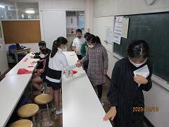 今日のステップアップ学習は,金子先生の理科実験講座でした。分光シートと紙コップを使って,「カラフル万華鏡」をつくりました。