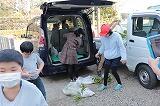 子ども達の発案で,収穫したダイコンとカブを「とうかつ草の根フードバンク」に寄付することになりました。ダイコンとカブは子ども食堂等で活用していただけるとのことでした。22日の午後に来校してくださったとうかつ草の根フードバンクの方達と一緒に,子ども達も積み込みを手伝いました。