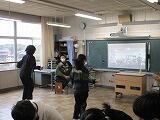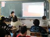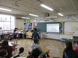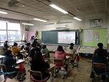 朝の時間を利用して,6年2組と5年1組の交流です。6年生がトランプの手品を披露しました。5年生の教室では,スクリーンを見ながら素晴しい演技に拍手をしていました。