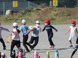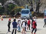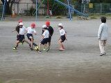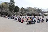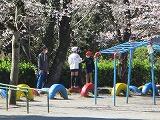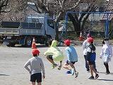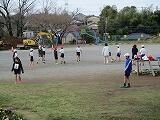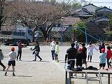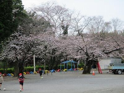きれいなピンク色の花がきれいです。3年生は満開の桜に囲まれたグラウンドで体育(サッカー)の授業です。一心にボールを追いかけています。
