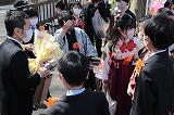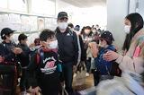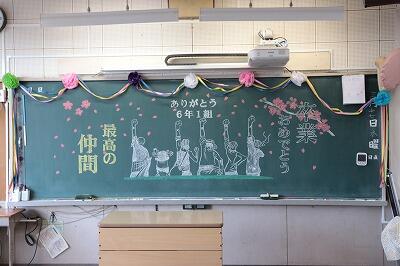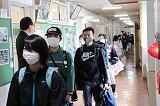在校生は,17日の卒業式に出席できないため,前日の16日に急遽,お別れの会を行いました。時間が十分とれなかったですが,6年生が各学年の教室前で待機している在校生の間を通って昇降口に向かいます。在校生は,拍手で送りました。