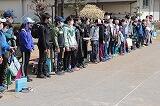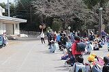 その後,集団下校の時間を使って,グラウンドで最後のセレモニーです。5年生全員から6年生に向かってメッセージを送りました。