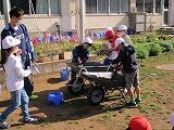 2年生は先日,「新入生のために自分たちはどんなことができるだろうか?」という話し合いをしました。その中で「お花で飾ってお祝いしよう!」ということになりました。早速,今まで使っていた植木鉢の土を入れ換え,花の苗を植えました。入学式にはきれいな花が咲くといいですね。しっかりお世話をして,きれいな花を咲かせましょう!