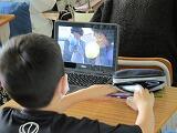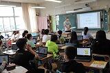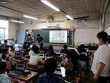 課題の提出が終わった人は,「キーボー島」(タイピングソフト)に取り組んでいました。ローマ字表で一字一字確認しながら打っていきます。子ども達はゲーム感覚でやっています。どんどん上達していくみたいですね。