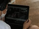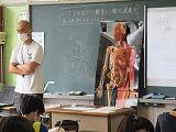 理科では,体のしくみの分野の学習です。今日は,呼吸の部分の学習です。人体模型や動画を使って学習していきます。動画は,NHKの学習動画を視聴しました。黒板の大きなスクリーンにうつしています。同時に,自分の端末でも見ることができます。