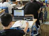 終わった児童は,算数の図形ソフトを使って自習をしています。文字の入力は,ひらがなのキーボードや音声入力を使っているようですね。