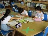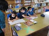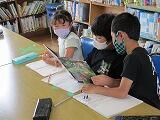 2年生は,国語で「すみれとあり」を勉強しました。その中で,生きもの同士の助け合い(共生)を知りました。今日は,他の生きもの間でも助け合い(共生)を図書室の本を使って調べています。端末を使った調べ学習も便利ですが,図書室の本で調べることもとても大切です。