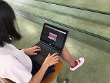 今日は,5つのグループに分かれての活動です。この時間の課題は,「端末とヘッドセットを活用し,クループ内でコミュニケーションをとる」というものです。体育館を使って,思い思いの場所に移動し,グループ内で「しりとり」をしました。ヘッドセットについているマイクのスイッチや音量調節のところでつまずいて,うまく会話ができなかった人もいましたが,最終的には全グループともグループ内のコミュニケーションがとれたようです。さあ,次は外国語活動で使ってみましょう!ALTと上手にコミュニケーションがとれるかな?