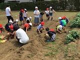 3年生は4時間目に,畑で作業をしました。場所を分担して草を取り,苗を植える準備をしました。ヒマワリ,ホウセンカの苗をていねいに植え替え,水をかけました。きちんとお世話をしてくださいね。