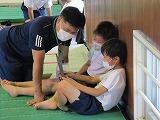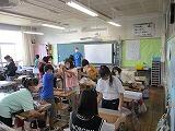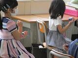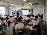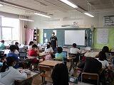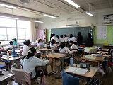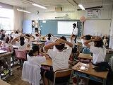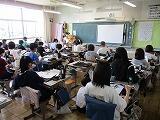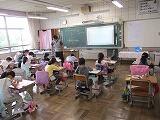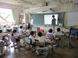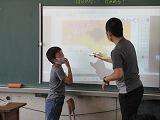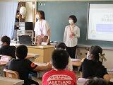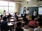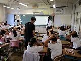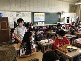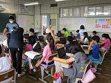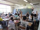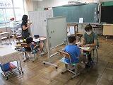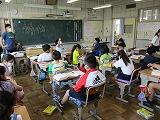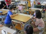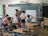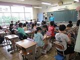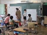 5年生は,担任の江原先生・ALTのリチャード先生と一緒に「ミッシングゲーム」や「キーワードゲーム」などで楽しく活動しました。「キーワードゲーム」では,英語を声に出して発音しながら,リチャード先生の合図で中央に置いた消しゴムを取り合うゲームです。合図をドキドキしながら待ちます。途中,お手つきもありました,みんな楽しく,元気に活動していました。