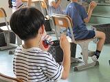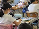6年生の音楽はりコーダーの練習でした。感染防止の観点から,今日は,吹かずに,指使いの練習が中心でした。草間先生が各自の端末に送ってくれた,指使いの映像を見て確認をします。できない部分は,映像を止めたり,繰り返し見直したりして,練習しました。