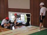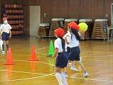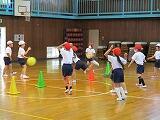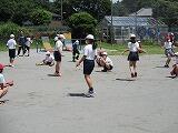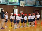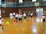紅組,白組に分かれて,ドッチボールのゲームです。一進一退の攻防が続きました。東條先生の笛が鳴り,ゲームセット。結果は,23対23の同点,引き分けでした。紅組,白組ともに頑張りましたね!