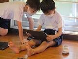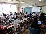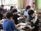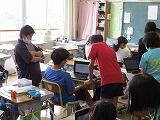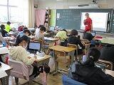 6年生は,前回に引き続き,グループで日光についてのプレゼンです。グループごとに接続操作も行っていきます。内容も良く吟味してあるようですし,機械の操作も慣れてきています。さすが6年生!