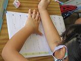 今日のテーマは「ものさしでながさをはかろう」です。消しゴム,筆箱,教科書,配膳台,・・・。身の回りにある物の長さをはかります。はかるまえに自分で,「これは〇cm〇mm」と予想をしてからはかることで,長さの感覚も身につけていきます。30cmのものさしでは足りないものは,何人かで協力してはかりました。