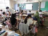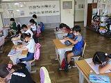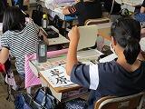 今日から,3~6年生の習字の授業が始まりました。講師の綾部先生のご指導で半紙にていねいに書いていきます。久しぶりに筆を持つ人もいるようですね。姿勢を正しくして,一筆一筆ていねいに!