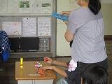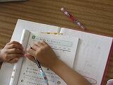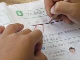 この時間は,2人で算数の授業です。わり算の筆算に取り組んでいました。進度が異なるので,個別に指導していきます。