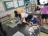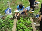 今日の理科は,花壇に植えたホウセンカ,ヒマワリ,オクラの観察です。葉の枚数や葉の付き方,大きさなどの特徴を記入し,簡単なスケッチを書き入れます。写真を撮るのもいいですが,自分手でスケッチをする技術も大切ですね。