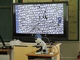 昨年度,購入した顕微鏡を大型ディスプレイに表示するシステムです。この画像を確認することで,今,自分の顕微鏡で見ているものが今日の目的とした部分かどうかを確認することができますね。