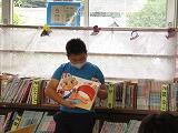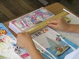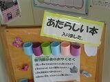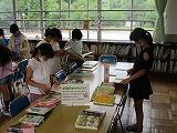 図書室に,今年度購入したあたらしい本(新刊本)が入りました。分類して机の上に並べられています。3年生は,今借りている本を返却してから、それぞれ気に入った新刊本を手にとって読んでいました。
