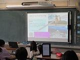 5つのグループにわかれ,場所も教室と図工・家庭科室を使って活動しました。途中,回線状況が不安定で画像が表示されなくなるなどのトラブルがありましたが,各グループ共に前回交流したALTへのインタビュー内容を確認し,情報を共有することができました。