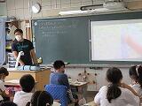 今日の社会は,「どうして東京湾ぞいに工場がたくさんあるのだろうか」をテーマに学習を進めました。担任の松葉先生が地図を実物投影機で黒板のスクリーンに映し出し,それを見ながら気づいたことを発表し合っていました。