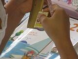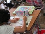 今日の国語は,「けむりのきしゃ」の単元の学習です。プリントに,おじいさんの台詞を書き入れ,色鉛筆やクレヨンでていねいに色を塗り,オリジナルの絵本を作ります。
